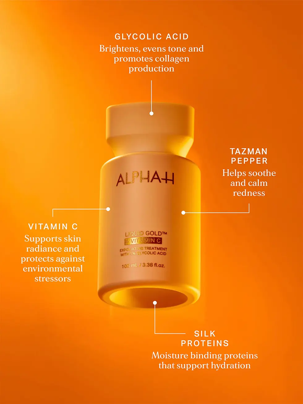 Water (Aqua), Tetrahexyldecyl Ascorbate, Caprylic/Capric Triglyceride, Glycerin, Hexyl Laurate, Sorbitol, Butylene Glycol, Stearic Acid, Glyceryl Stearate, PEG-100 Stearate, Cetyl Alcohol, Sorbitan Monostearate, Polysorbate 60, Dimethicone, PPG-12/SMDI Copolymer, Squalane, Ethoxydiglycol, Sodium Hyaluronate, Sodium Mannose Phosphate, Mannose, Hydroxyapatite, Acetyl Zingerone, Mannitol, Ergothionene, Hydrolyzed Glycosaminoglycans, Propylene Glycol, Tocopheryl Acetate, Cetearyl Ethylhexanoate, Di-PPG-2 Myreth-10 Adipate, Linoleic Acid, Ferulic Acid, Glycine Soja (Soybean) Sterols, Phospholipids, Citrus Aurantium Dulcis (Orange) Callus Culture Extract, Ectoin, Cyclotetrapeptide-24 Aminocyclohexane Carboxylate, Retinol, Arabidopsis Thaliana Extract, Micrococcus Lysate, Plankton Extract, Glucosamine HCL, Sea Water, Pullulan, Hydrolyzed Rhodophyceae Extract, Chlorella Vulgaris Extract, Laminaria Digitata Extract, Saccharide Isomerate, Saccharomyces Cerevisiae Extract, Urea, Polysorbate 20, Bakuchiol, Isosorbide Dicaprylate, Alcohol, Lecithin, Phenoxyethanol, Caprylyl Glycol, Ethylhexylglycerin, Hexylene Glycol, Sodium Benzoate, Gluconolactone, Calcium Gluconate, Magnesium Aluminum Silicate, Xanthan Gum, Disodium EDTA, BHA, BHT, Citrus Aurantium Dulcis (Orange) Peel oil, Limonene, Linalool, Citral, Geraniol